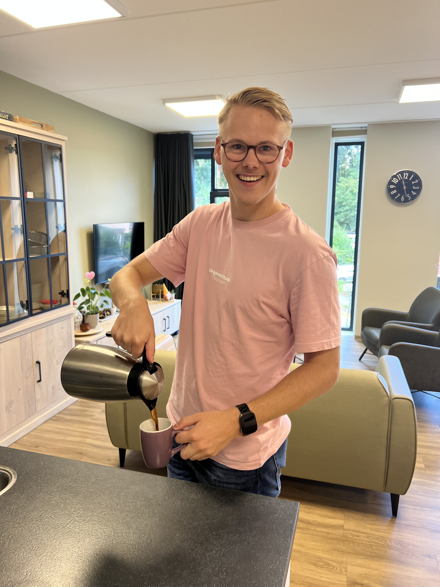 Bas zit helemaal op zijn plek. Hij vindt de cliënten heel leuk, maar ook van zijn collega’s krijgt hij een positieve energie. “Het team voelt vertrouwd en mijn stagebegeleider is heel meedenkend. Ze geeft mij de ruimte om te leren”, zegt Bas. “Het voelt hier heel erg als een familie. In het begin is dat even wennen, want dat kende ik niet, maar ik vind het wel heel prettig werken.”